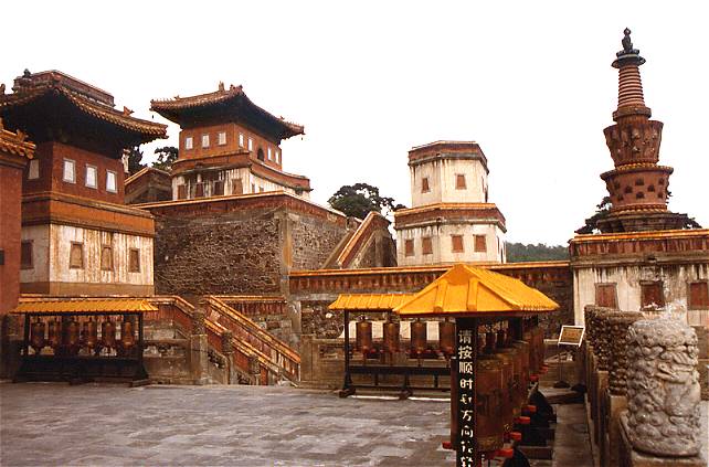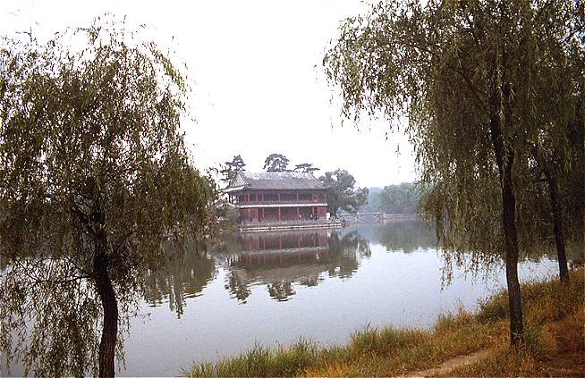 Erst gegen halb 10 hinaus in den Nebel gewagt und den eigentlichen Grund für den Ausflug nach Chengde aufgesucht: den alten Sommerpalast. Sind etwas enttäuscht, denn viele der Gebäude existieren nur mehr als Fundamente oder werden als Souvenirstände verwendet. Die ganze Anlage macht im trüben Licht des verregneten Vormittags einen recht heruntergekommenen Eindruck, das totale Fehlen westlicher Touristen verstärkt unser Gefühl der Abgeschiedenheit. Spazieren gegen Mittag Richtung Stadtzentrum und finden den Essensmarkt, auf dem wir uns an einem Stand mit dampfgegarten, fleischgefüllten Teigbällchen verköstigen - nach dem enttäuschend verlaufenen Vormittag ein echter Lichtblick. Gesättigt bestaunen wir das Angebot an Eßwaren: Obst und Gemüse (bekannt und unbekannt), Teigwaren (roh, zubereitet), Geflügel (lebend, tot, z.T. gerupft), Fisch (lebend, selten tot), Krabben, Schlangen (lebend, ausgenommen, gehäutet), aber alles ohne den sonst unvermeidlichen Fischgeruch. Verlassen das bunte Treiben, um unseren Zug zurück in die Hauptstadt nicht zu verpassen. Die Fahrt geht zuerst durch hügelige, teilweise zerklüftete Landschaft, später wird es flacher und Obstbäume und Getreidefelder bestimmen das Bild. Erst in den letzten 20 Minuten lassen sich in der hereinbrechenden Dunkelheit Hochhäuser ausmachen. Wir beziehen wieder das uns schon bekannte Hotel für eine letzte Nacht in Peking.