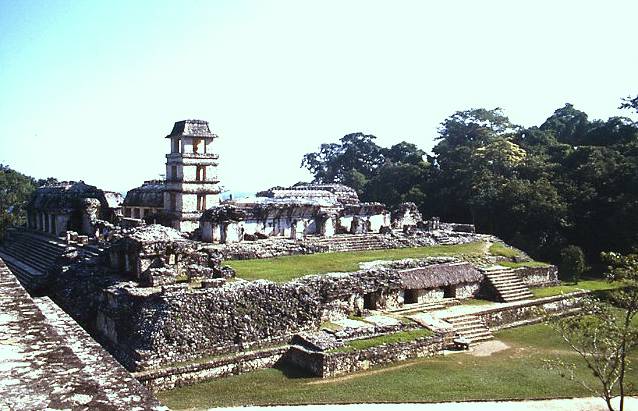 Heute steht einer der Höhepunkte einer Mexiko-Rundreise auf dem Programm. Sind schon zeitig am Mayakopf-Denkmal an der Kreuzung und werden bald von einem Colectivo zu den Ruinen von Palenque mitgenommen. Schon am Eingang werden die Besucher darauf hingewiesen, daß der Abstieg in die Grabkammer in der Pyramide der Inschriften und der Besuch des Museums bis 12.12. nicht möglich sind. Macht nichts, die restliche Anlage mit Pyramiden, Plätzen, Aufstiegen und Wanderwegen nimmt auch so genug Zeit in Anspruch. Stiefeln tapfer durch den Dschungel, über schlüpfrige Steine und in tropfende Tempelbauten. Der Templo de las Inscripciones ist überhaupt gesperrt, dafür ist in der daneben gelegenen Pyramide XIII ein Blick auf das 1994 entdeckten Grab der "Reina Roja" möglich. Streifen dann ein Weilchen durch den "Palacio" genannten Komplex und wenden uns dann den im Urwald verborgenen Bauten zu. Neben der Kreuzgruppe ist dabei der Tempel XX interessant, in dem Fresken freigelegt wurden, die jetzt als Kopie besichtigt werden können (die Originale befinden sich im Anthropologische Museum in Mexico City). Nach einem kurzen Streifzug durch die Grupo Norte machen wir uns auf den Abstieg und folgen dabei dem Lauf des kleinen Baches. Der Weg ist schattig und kühl und führt an einem hübschen Wasserfall vorbei bis zur Straße. Schräg gegenüber befindet sich das Museum, dieses ist aber wie gesagt geschlossen und bis zum 12.12. ist noch viel zu tun. Jetzt ist Mittag schon vorbei und wir fahren mit einem Colectivo in den Ort zurück. Dort buchen wir für morgen und übermorgen die Ausflüge nach Bonampak / Yaxchilan bzw. Misol Ha / Agua Azul und stärken uns anschließend in (oder besser vor) einem Restaurant. Lassen uns wegen der Hitze von einem klimatisierten Taxi zum Hotel bringen, halten Siesta und erfrischen uns etwas später wieder im Pool, sehr zur Verblüffung des Personals. Spazieren fürs Abendessen wieder ins Zentrum, lauschen danach dem Konzert der örtlichen Marimbagruppe und besorgen auf dem Heimweg noch Buskarten für Samstag nach Merida.
