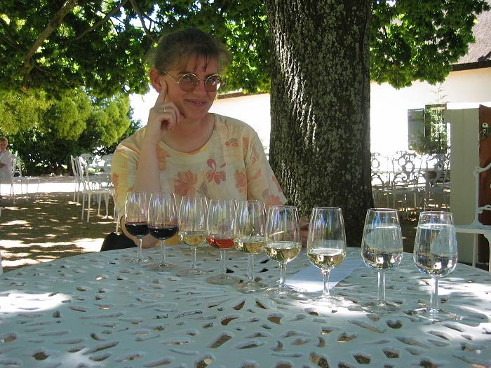 Einer Empfehlung möchten wir noch folgen und besuchen zum Abschluß Morgenhof Estate. Gepflegte Umgebung, schöner Park, hübsches Verkostungsgebäude, beeindruckender Keller und gute Weine, bei denen wir nicht widerstehen können. Und das köstliche Mittagessen macht den Tag perfekt.