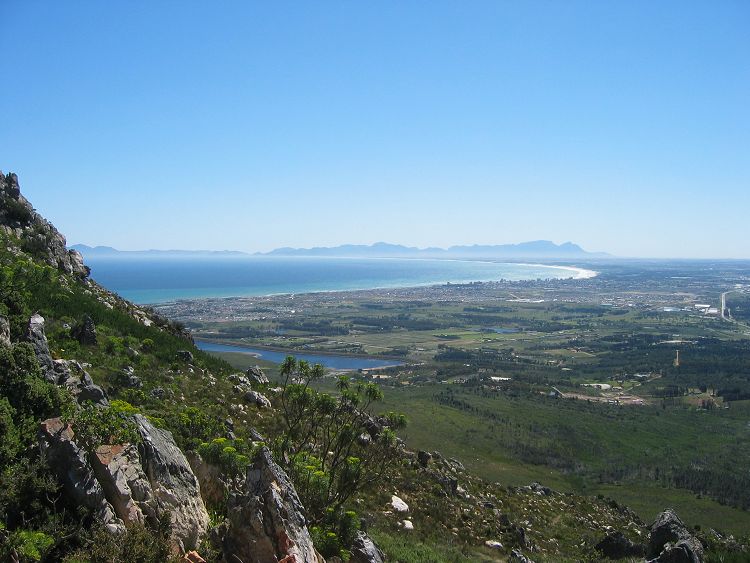 Die Weiterfahrt erfolgt zuerst querfeldein über eine ungeteerte Straße, die auf unserer Karte nicht mit diesem Verlauf eingezeichnet ist, aber in die Küstenstraße R43 mündet, über die wir bis Hermanus fahren. Die Stadt der Wale bietet unzählige Unterkünfte, aber alle sind voll. Es ist wieder einmal Wochenende, und die Südafrikaner sind alle unterwegs - das haben wir unterschätzt. Nach über einer Stunde vergeblicher Suche erbarmt sich eine Zimmerwirtin und telefoniert für uns herum. In Hermanus ist wirklich nichts mehr zu bekommen, aber im nächsten Ort, Sandbay, gibt es ein neues B&B, das uns aufzunehmen verspricht. Gegen 1/2 6 beziehen wir für eine Nacht ein modernes, helles, unverschnörkeltes Zimmer mit Balkon und Meeresrauschen im "Bamboo Beach B&B and Restaurant".