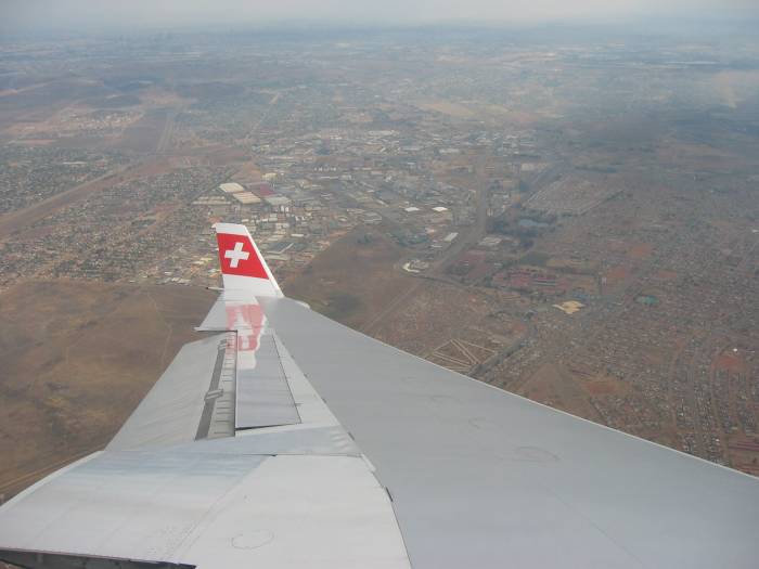 Kurz nach 6:00 wird es dann wieder lebendig in der MD11, um 7:00 gibt's Frühstück und mit einer halben Stunde Verspätung landen wir um 9:00 in Johannesburg.