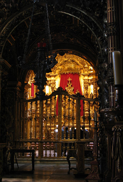 Die Kathedrale sieht von außen nicht so besonders aus, ist aber innen schön barock vergoldet und verschnörkelt. Das gilt auch in weiterer Folge für die Kirchen und Klöster der diversen Orden und Bruderschaften, die im 17. Jahrhundert der Stadt ihren Stempel aufdrückten. Bei der Kirche des 3. Ordens der Franziskaner (eine Laienbruderschaft) mit plateresker Fassade sind wir nicht schnell genug mit dem Nein-Sagen und haben plötzlich einen Führer am Hals, der uns zwar ausführlich alles über Geschichte, Gemälde, Statuen und Künstler erklärt, aber alles wollen wir gar nicht wissen. Nur mit Mühe können wir unseren Weg ohne Begleitung fortsetzen.