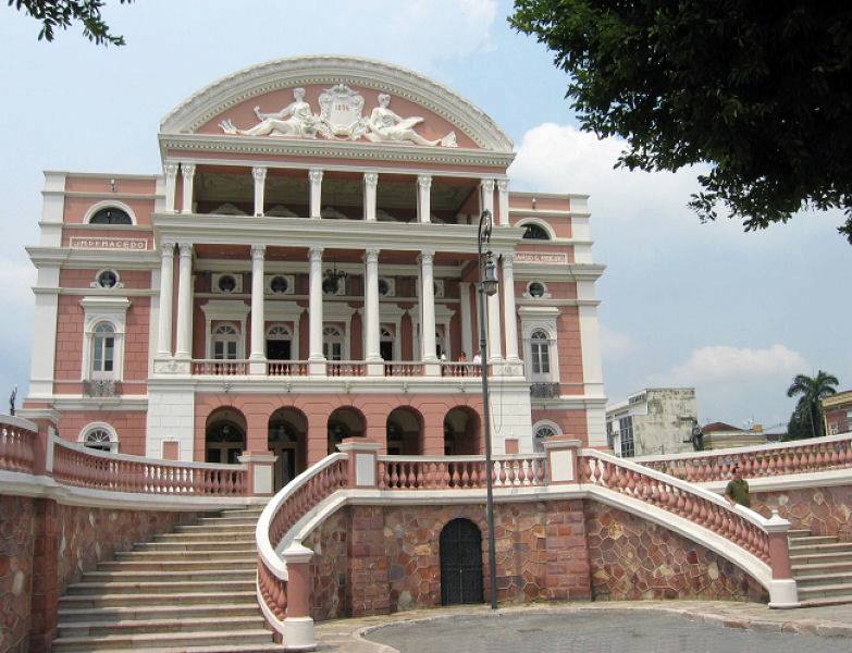 der Kautschukbarone. Im Zuge einer englischsprachigen Führung erfahren wir viel über die Geschichte der Stadt und des Teatro Amazônico. Besonders schön sind neben dem Theatersaal auch der Ballsaal und die aus verschiedenfarbigen Tropenhölzern bestehenden Parkettböden.
