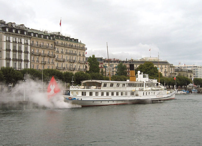 Es regnet noch immer und wir haben eigentlich gar keine Lust hinauszugehen. Aber nach einem reichhaltigen Frühstück packen wir die Sachen zusammen und spazieren gegen 9:30 los. Überqueren wieder die Mont-Blanc-Brücke und werfen einen Blick auf den Hochstrahlbrunnen und die rauchenden Raddampfer auf dem Genfer See. Am anderen Ufer der Rhône erklimmen wir wieder den Altstadthügel und wollen einen Blick in die Kathedrale werfen.
