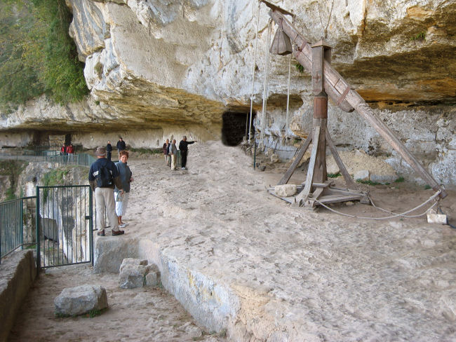 Kurz nach 11:00 Uhr fahren wir weiter das Tal entlang und gelangen nach Roque Saint Christophe. Dort erwartet uns eine mittelalterliche Felsensiedlung unter Europas längstem Felsüberhang (400 m), die ursprünglich auf 5 Etagen über dem Tal Sicherheit bot. Schon in der Steinzeit war die Felswand besiedelt und erst im 17. Jahrhundert wurde die Stadt verlassen.