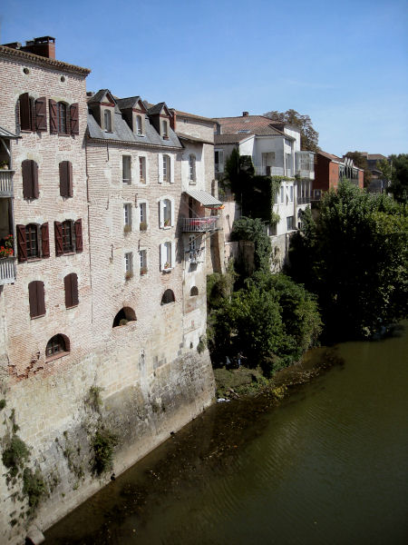 Zu Mittag verlassen wir den Ort und fahren querfeldein nach Süden . In Villeneuf sur Lot ergattern wir einen kostenlosen Parkplatz in der Nähe der Altstadt, aber die Touristeninfo hat noch zu. Spazieren also mit dem Plan aus dem Reiseführer ausgestattet durch den Ort und überqueren dabei zweimal den Fluß. Richtig schön finden wir die Stadt aber nicht und so suchen wir bald wieder unser Auto und die Stadtausfahrt nach Grange sur Lot.