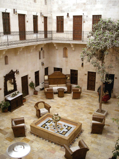 Beziehen ein geräumiges Zimmer am überdachten Innenhof und spazieren anschließend ein paar Häuser weiter zum angeschlossenen Restaurant, wo wir die erste Bekanntschaft mit der orientalischen Küche machen. Das Essen ist gut, besonders die vielen Vorspeisen, das Bier (sowohl das aus Syrien, als auch das aus dem Libanon) hat einen eigenwilligen Nachgeschmack. Unterhalten uns noch ganz gut mit Mitreisenden, die wir schon von der Usbekistan-Reise kennen und schlendern gegen 23:00 Uhr bei ca. 10°C heimwärts.