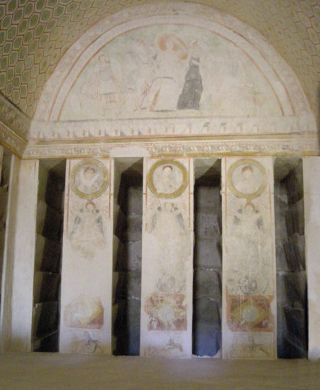 aus dem Jahr 103 n.Chr. kann besichtigt und bestiegen werden. Nur wenige hundert Meter davon entfernt finden sich die unterirdischen Grabanlagen, die auch über mehrere Generationen letzte Ruhestätte einer Familie waren, aber in den Boden hinein gebaut wurden und zum Teil noch Wandmalereien aufweisen. Das berühmteste davon ist das "Grab der drei Brüder"