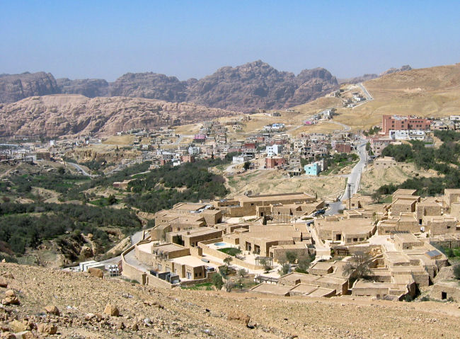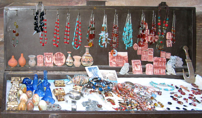 im Zentrum des modernen Ortes Petra gebracht. Nach dem Abendessen (Buffet wie immer, aber besser als zuletzt) gehen wir noch etwas spazieren, schauen in das Gebäude der Mosesquelle und landen in einem Souvenirladen, wo gerade Sandflaschen