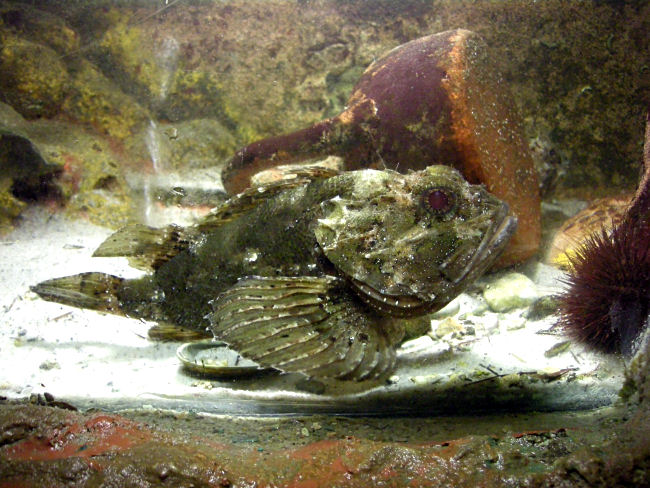 Nach einer kurzen Rast unter der großen Platane vor dem Eingang kurven wir wieder hinunter und folgen der westlichen Uferstraße bis vor zur Spitze von Rhodos. Unterwegs müssen wir öfter stehenbleiben um die vielen Blau- und Türkistöne des klaren Wassers zu bewundern. Um 12:00 Uhr sind wir bei unserem allerletzten Besichtigungsziel, dem Aquarium. In diesem hübschen altmodischen Gebäude finden sich einerseits ausgestopfte Tiere und andererseits in mehr oder weniger großen Becken diverse Fische und sonstige Meeresbewohner. Nach einer Stunde spazieren wir noch die Strandpromenade entlang und machen in einem Straßencafe Leute-Schau-Pause.
