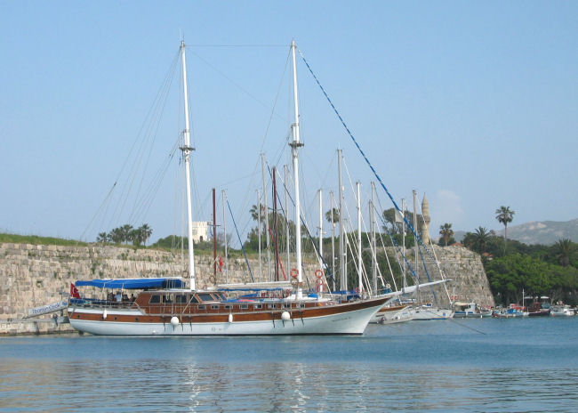 Schauen nach dem Aufwachen, wie das Wetter ist und drehen uns dann nochmal genüßlich um - der Himmel ist blau, also wird heute Badetag gemacht. Aber während des Frühstücks ziehen Wolken auf und wir beeilen uns, zum Hafen zu kommen. Unser Alternativ-Programm sieht nämlich für diesen Fall eine Ausflugsfahrt nach Bodrum in der Türkei vor. Haben gestern beim Bummeln die Werbetafeln diverser Veranstalter studiert und wollen die 10:00-Uhr-Überfahrt nehmen. Leider haben in der Vorsaison die Ausflugsboote aber schon um spätestens 9:30 Uhr abgelegt....