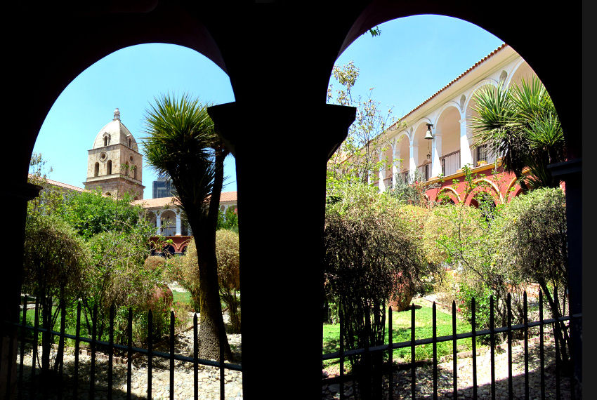 Werden um halb zwei beim Hotel abgesetzt und vereinbaren den Flughafentransfer für morgen. Nach einer kurzen Regenerationspause im Zimmer erkunden wir auf eigene Faust die Umgebung und landen für eine Erfrischung in einem netten Innenhoflokal. Warten dort, bis die Chefin des Diözesanmuseums auftaucht und wir neben diversen Klosterräumen einen Blick auf den größten Schatz des Museums werfen können, die "Virgen de Guadelupe". Das ist das mit Gold, Perlen und Edelsteinen besetzte Gemälde der Nationalbeschützerin Boliviens.