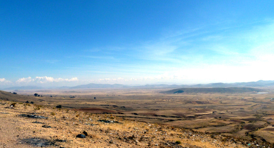Haben in dieser gemäßigten Höhe ganz gut geschlafen und nach einem kleinen Frühstück werden wir von Omar um 8:00 mit einem Geländewagen abgeholt. Um das morgendliche Verkehrschaos auf der Hauptverbindung zu umgehen, geht die Fahrt aus der Stadt heute über extrem steile Nebenstraßen die Direttissima hinauf nach El Alto. Dort folgen wir der Nationalstraße 1 südwärts bis Patacamaya. Nach einem längeren Tankstopp geht es weiter Richtung chilenischer Grenze.