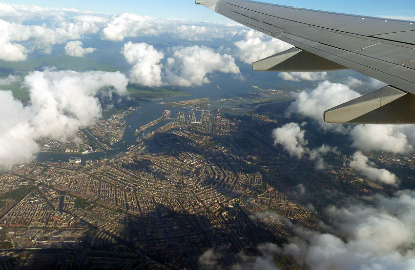 Fast pünktlich geht's dann von Zürich nach Amsterdam. Dort wandern wir weit, bis wir das internationale Terminal erreichen, nur um auch hier Schlange zu stehen, denn am Gate gibt's einen Sicherheits-Check mit pingeliger Handgepäckkontrolle und Ganzkörper-Scan.