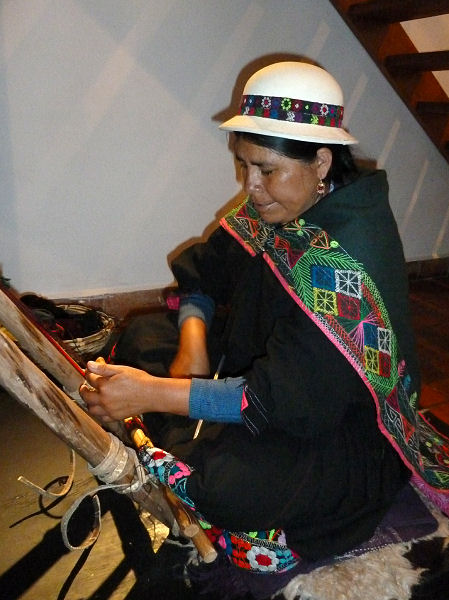 Sind heute etwas früher aus den Federn und machen uns schon kurz nach 9:00 auf zur ersten Besichtigung. Das nicht weit entfernte Volkskunstmuseum ist unser Ziel. In diesem schön hergerichteten Kolonialhaus befinden sich wunderschöne Sammlungen von Textilien, Masken, Federschmuck, Keramik und Goldarbeiten.