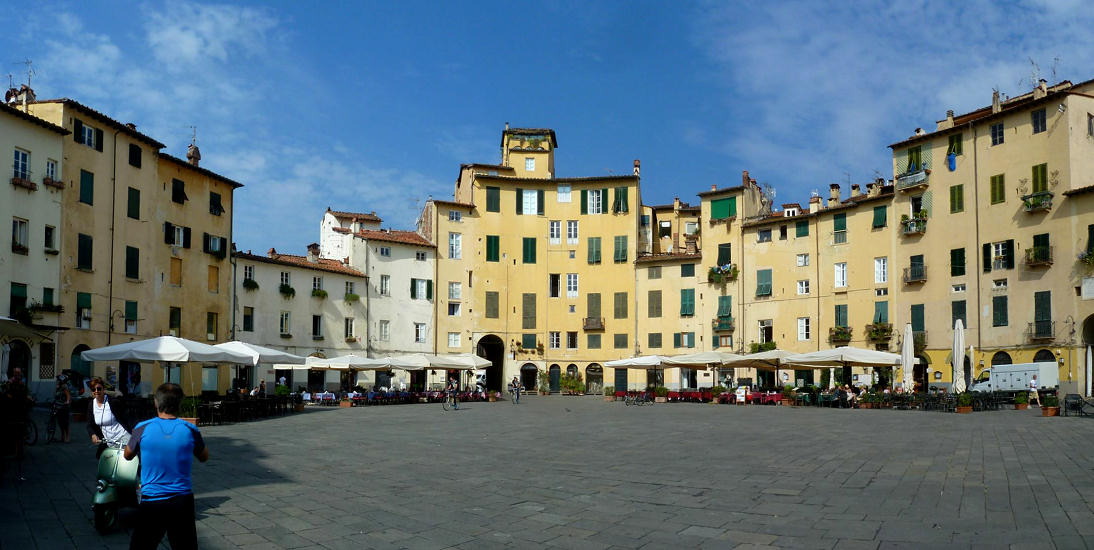Zu Mittag gehen wir zur ovalen Piazza Anfiteatro, an der zahlreiche Lokale zu einer Rast einladen. Im Anschluss geht es weiter zum Torre Guinigi, einem Aussichtsturm eines Palazzos. Nach 230 Stufen kann man neben dem schönen Blick über die Kirchen und roten Dächer von Lucca noch ein paar alte, knorrige Olivenbäume bewundern.