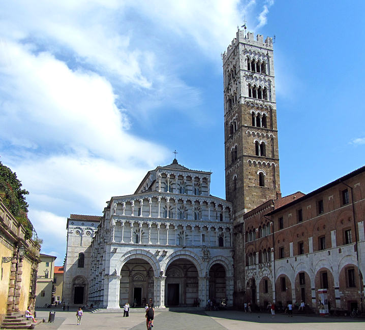 Wieder zu ebener Erde ist der Dom San Martino das nächste Ziel. Die Fassade mit den Arkaden und der hohe Turm machen diese Kirche schon von außen zu einem Blickfang. Im Inneren beeindrucken die mit einem blauen Sternenhimmel bemalte Decke und ein Abendmahl von Tintoretto.