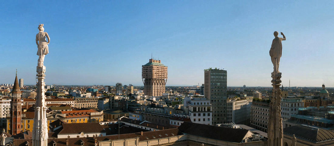 Von oben hat man noch einmal einen ungestörten Blick in die Landschaft, bei schönem Wetter bis zum 50 km entfernten Mailand.