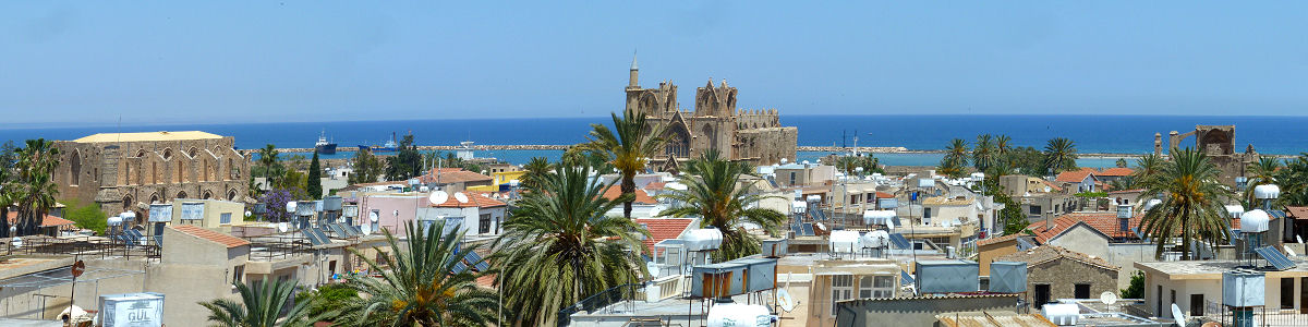 Mittags holt uns unser Fahrer wieder ab und fährt uns in die Altstadt von Famagusta. Er entlässt uns an der Hafenseite der Befestigungsmauer aus dem 13. Jahrhundert, die das historische Zentrum noch immer umgibt. Besteigen als Erstes die Mauer für einen Überblick, dann steuern wir auf die ehemalige, rein gotische St. Nikolaus-Kirche zu, in der heute die Lala-Mustafa-Pascha-Moschee untergebracht ist - ein seltsamer Anblick. Dann bummeln wir weiter zu den mehr oder weniger sehenswerten Resten diverser Kirchen und Kastelle. Da Famagusta einst katholischer Bischofssitz und während der Kreuzzüge der Sitz des Königs von Jerusalem war, sind viele mittelalterliche Relikte zu sehen. Durchqueren die Altstadt und am anderen Ende besteigen wir noch einmal die Stadtmauer für einen Blick in die neuen Stadtteile. Dann geht es, vorbei an weiteren (meist gotischen) Kirchenruinen zurück zum Hafen. Dort rasten wir uns in einem Lokal bei einer kleinen Stärkung etwas aus.