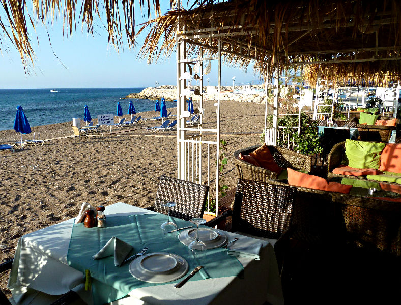 mit Tischen direkt am Strand an und wir beschließen, schon jetzt zu Abend zu essen. Ist eine gute Entscheidung, wir essen vorzüglich und in angenehmem Ambiente.