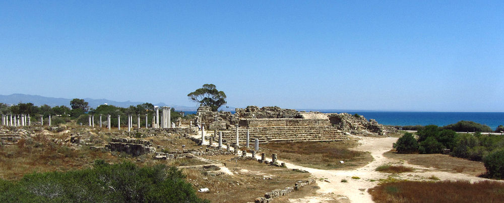 Die Wurzeln der größten antiken Stadt Zyperns reichen ins elfte vorchristliche Jahrhundert zurück und erst 1500 Jahre später wird sie endgültig verlassen. Am meisten zu sehen ist in der Nähe des Eingangs, da sind Säulen wieder aufgerichtet und Mosaike freigelegt. Kopflose Statuen zieren Simse und im Amphitheater sind die Sitzstufen ausgebessert. Aber auch bei einem Spaziergang durch die Landschaft kann man immer wieder etwas entdecken. Die Anlage ist auch nicht sonderlich überlaufen, so kann man sich durchaus als Entdecker fühlen.