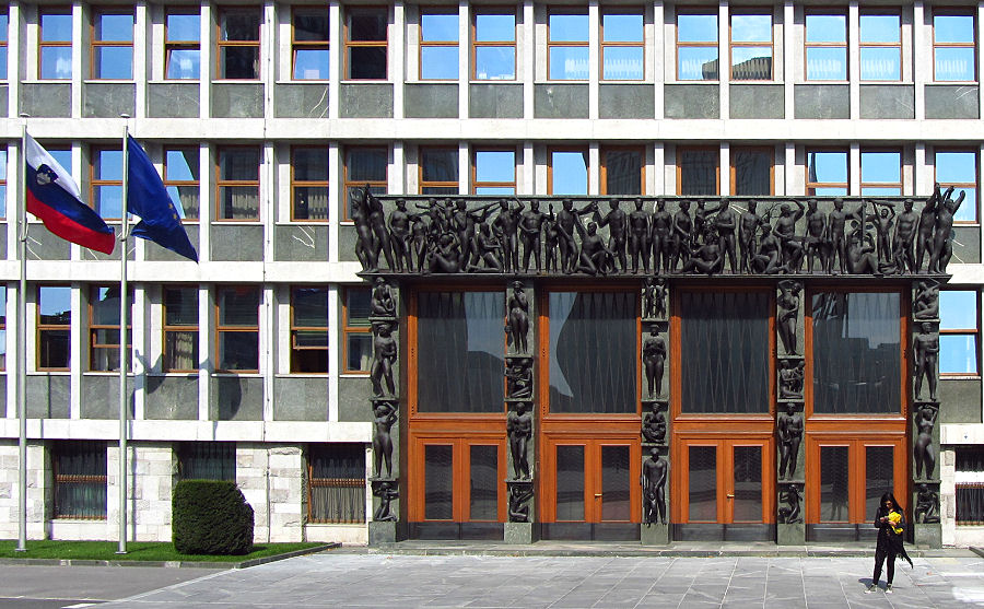Noch einmal gehen wir dann in die Altstadt und bewundern das Rathaus mit dem Renaissance-Hof und dem Drei-Flüsse-Brunnen. Nachdem wir in einem Straßencafé am Novi Trg in der Sonne gerastet haben, flanieren wir eher ziellos durch die engen Gassen der Altstadt und kommen so noch zum Slowenischen Parlament aus dem Jahr 1960 und zur barocken Ursulinenkirche mit einer recht eigenwilligen Fassade.