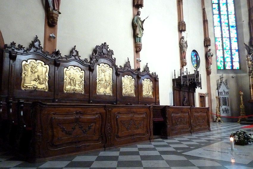 Unter kundiger und freundlicher Begleitung wird uns danach die überreiche Schatzkammer mit der "Bärenhaut" genannten Gründungschronik aus dem frühen 14. Jahrhundert gezeigt. Ebenso können wir einen Blick in die nicht öffentlich zugänglichen Bereiche der in den letzten Jahren renovierten hochgotischen Stiftskirche mit der üppigen barocken Ausstattung werfen. Dabei erfahren wir so nebenbei auch Wissenswertes über die Geschichte Österreichs.