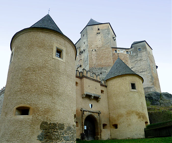 Unser nächstes Ziel ist nur eine Viertelstunde Autofahrt entfernt. Im nordöstlich gelegenen Heidenreichstein stellen wir das Auto auf dem Hauptplatz ab und gehen den Hügel hinunter zur gleichnamigen Wasserburg. Diese steht nur leicht erhöht an der Hauptstraße und ist von einem kleinen Bach, sowie Wassergräben umgeben. Auch hier kann man nur mit Führung einen Blick hinter die dicken Mauern werfen. Wir überqueren die Zugbrücke und sind pünktlich um 15:00 Uhr an der Kasse. Als einzige Besucher werden wir von einem mittelalterlich gekleideten Herrn in dem recht kalten mittelalterlichen Bau herumgeführt. Da die Burg nie ernsthaft in kriegerische Handlungen verwickelt war, sind noch einige originale Möbelstücke von der Renaissance bis zum Barock und auch Exponate in der Waffenkammer erhalten. In den leichter zu beheizenden Nebengebäuden lebt (zumindest zeitweise) noch immer die Besitzerfamilie, die dort auch die Gutsverwaltung untergebracht hat.