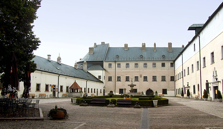 Im Rahmen einer geführten Tour kann man dieses ursprünglich als Festung konzipierte Schloss besichtigen. Beeindruckend sind die riesigen Kellergewölbe - ehemalige Lagerräume der Fugger - ebenso wie die prächtig dekorierten Innenräume des vom Adelsgeschlecht der Pálffy im Stil der Renaissance ausgebauten Herrschaftssitzes. Die Führung in einem etwas gewöhnungsbedürftigem Englisch dauert fast bis 13:00 Uhr und im Anschluss gönnen wir uns trotz der niederen Temperaturen im Innenhof, zwischen den Stein gewordenen Erinnerungen an die Familie Pálffy, eine Erfrischung.