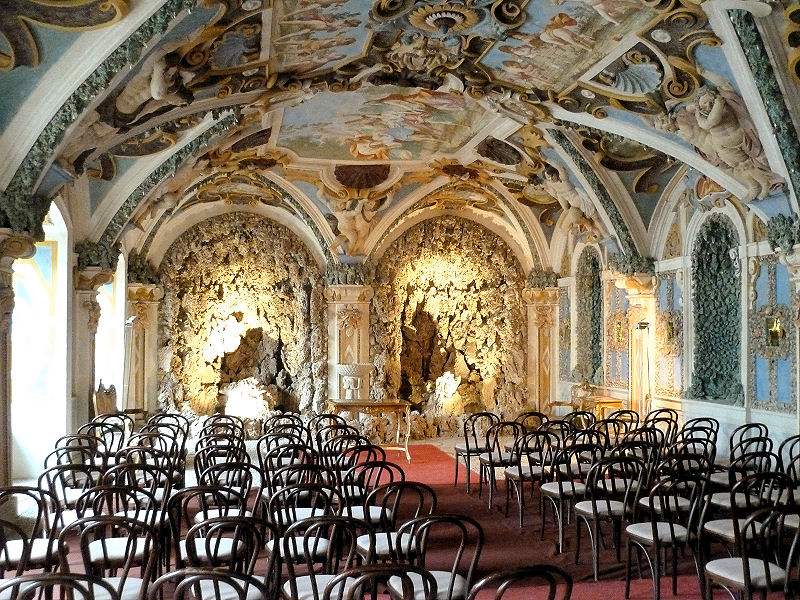 Das Innere ist der Zeit entsprechend ausgestattet, wobei die Einrichtung größtenteils noch original ist. Viel Holz, Marmor und Brokat, Nippes, Portraits und Intarsien prägen dieses Museum. Aus den Fenstern hat man einen schönen Blick auf das Meer - Miramare heißt ja auch Meerblick. Nach einer Stunde verlassen wir das zinnengekrönte Gebäude und genießen noch die angenehme Atmosphäre im weitläufigen Parkgelände bei einem Spaziergang zum Castelletto, dem 'kleinen' Gartenhaus.