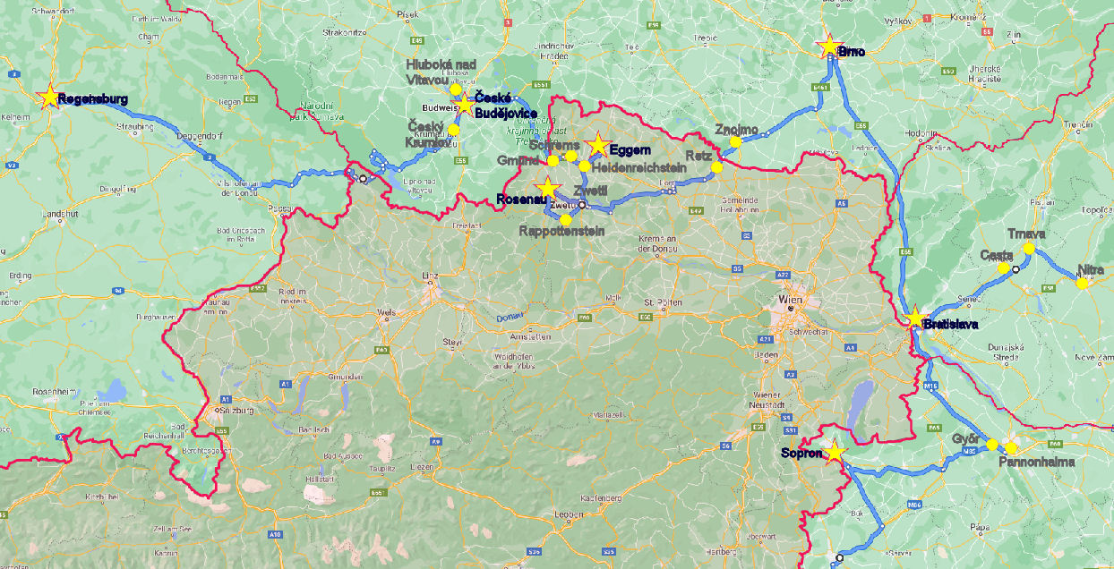 | Slowakei | 7. Tag | Častá - Trnava - Nitra - Bratislava (Pressburg) [312 km] | ||
