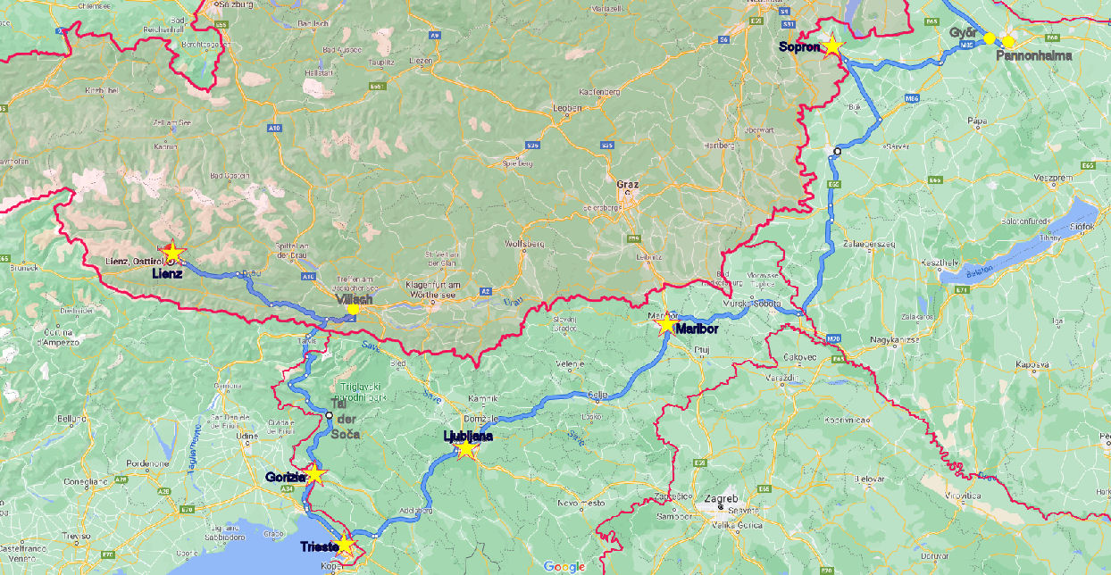 | Ungarn | 9. Tag | Győr (Raab) - Pannonhalma (Martinsberg) - Sopron (Ödenburg) [210 km] | ||